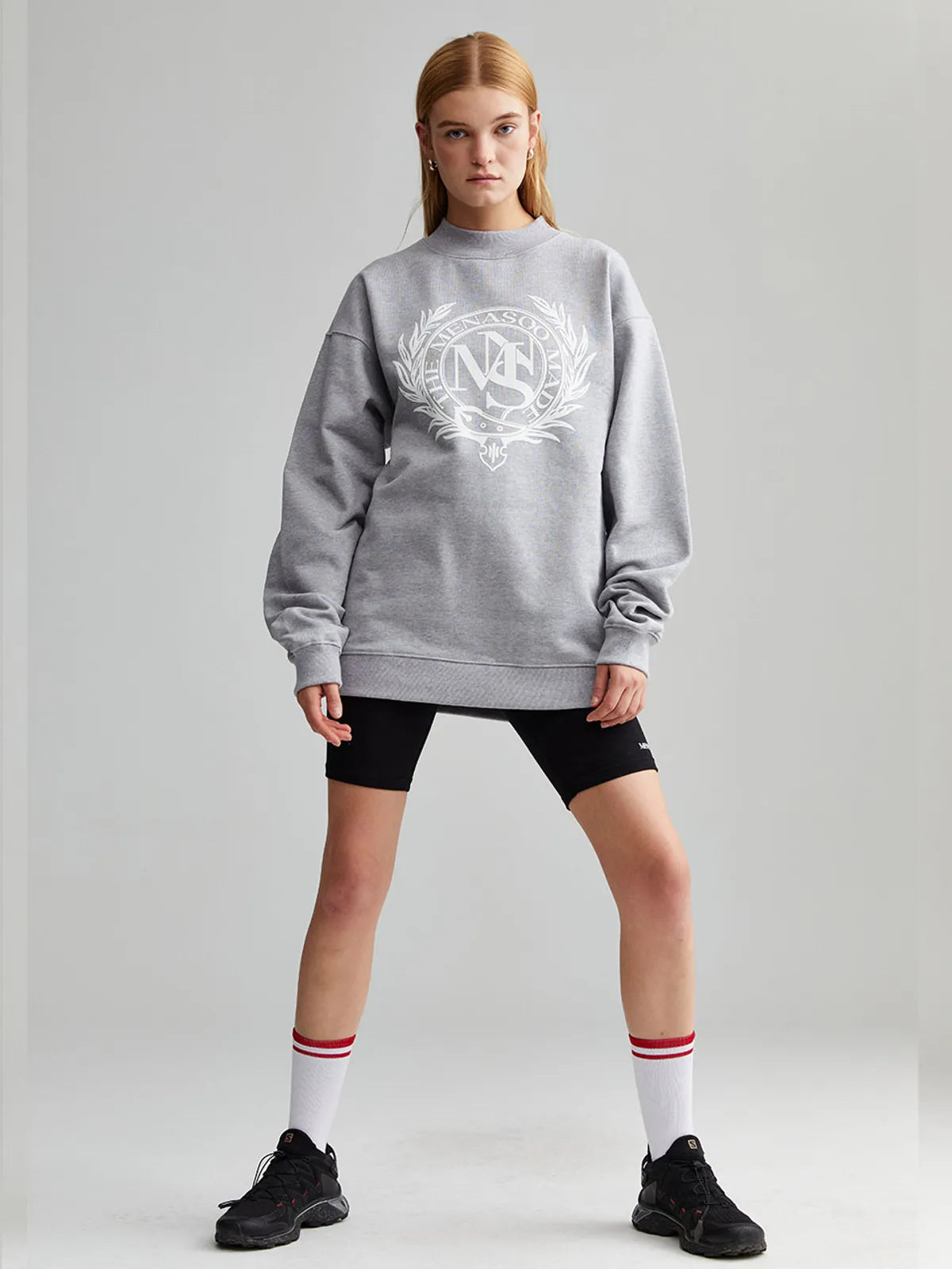 UNISEX HERITAGE EMBLEM MOCK-NECK SWEATSHIRT MELANGE