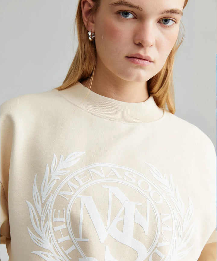 UNISEX HERITAGE EMBLEM MOCK-NECK SWEATSHIRT IVORY
