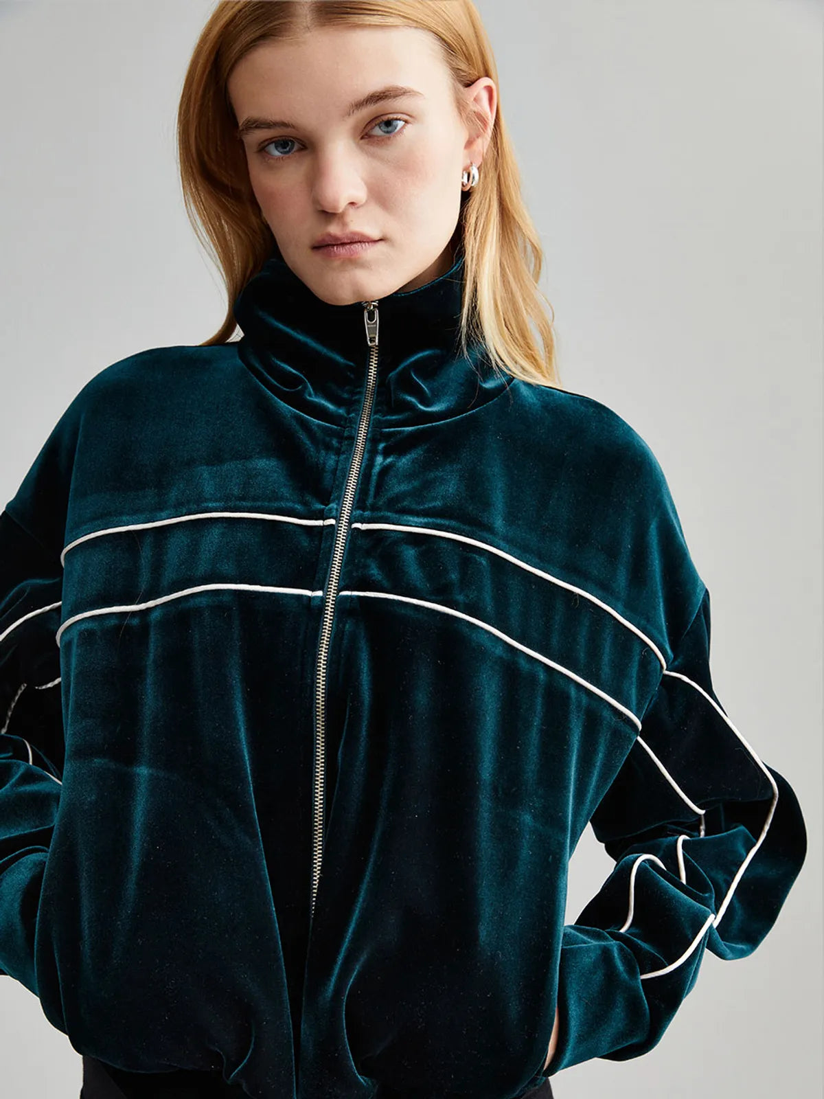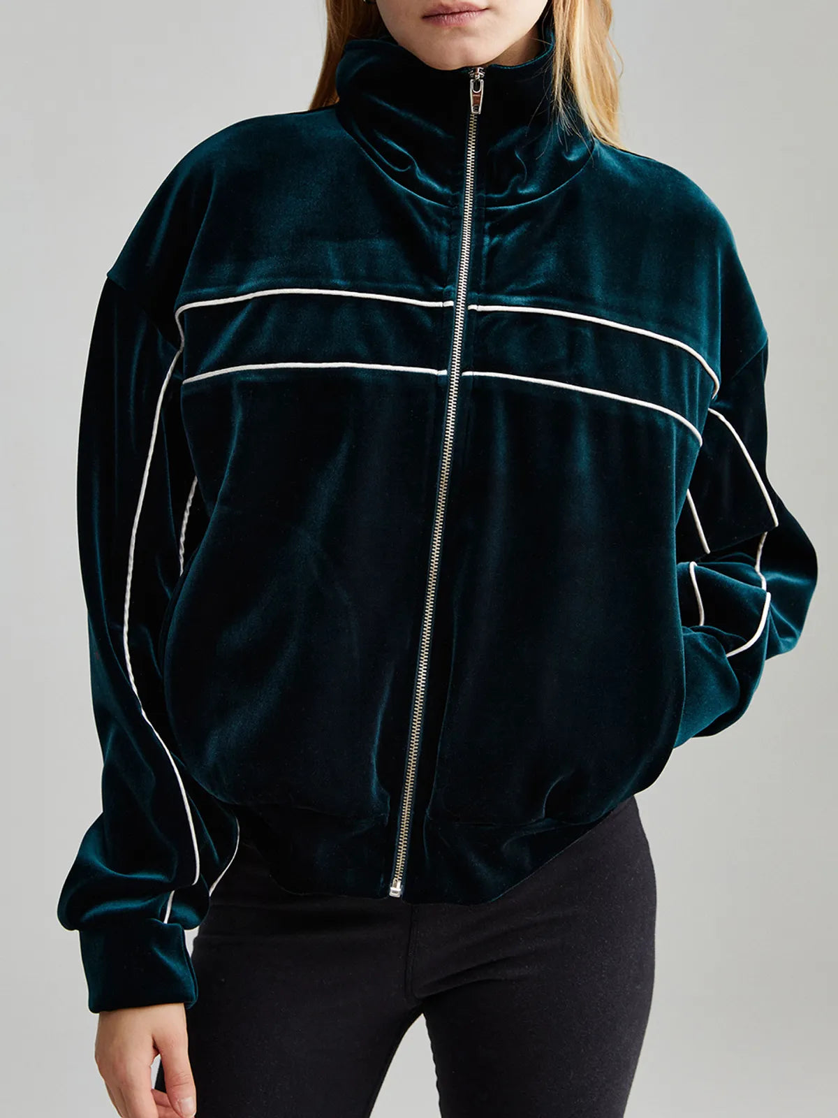 VELVET ZIP-UP JACKET_GREEN