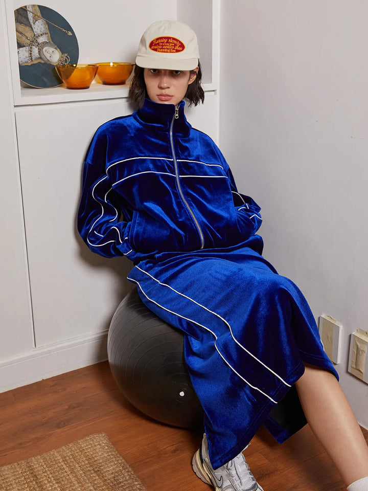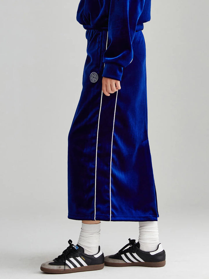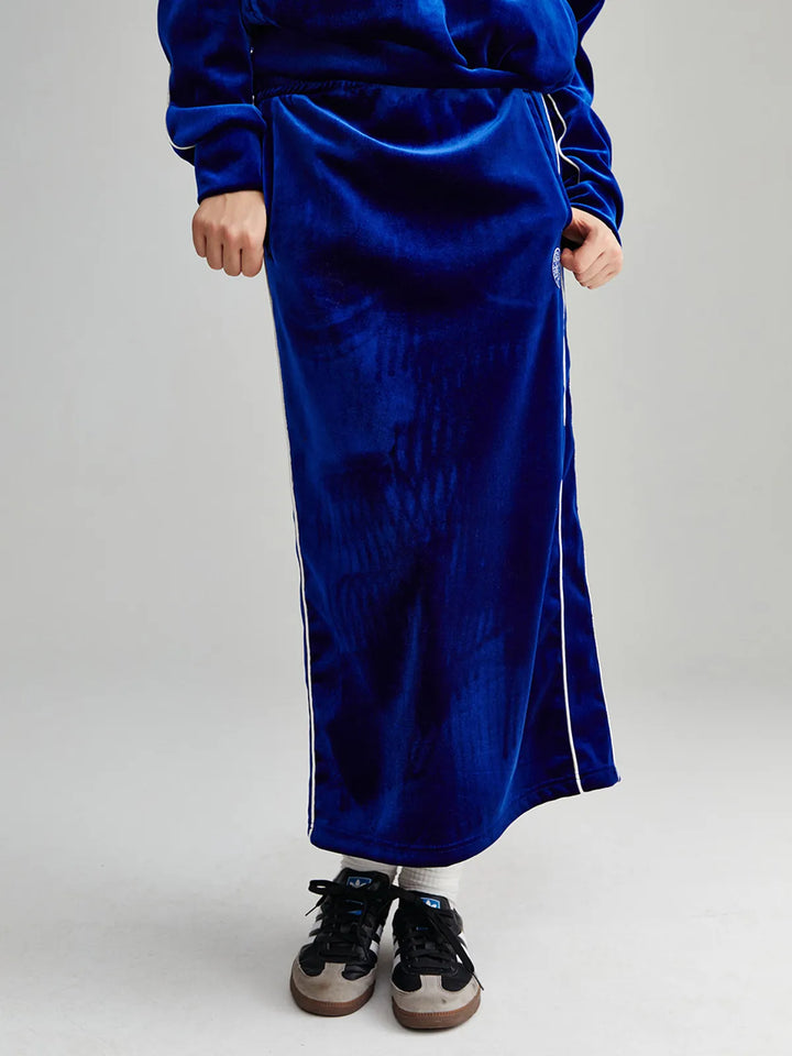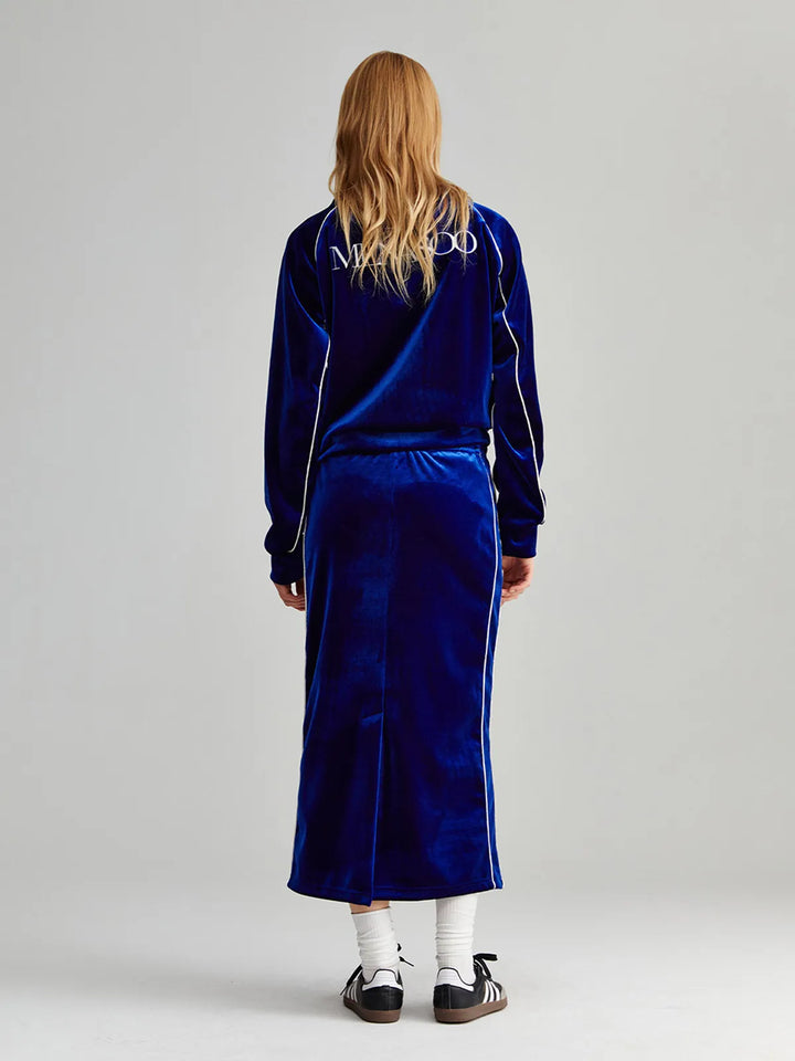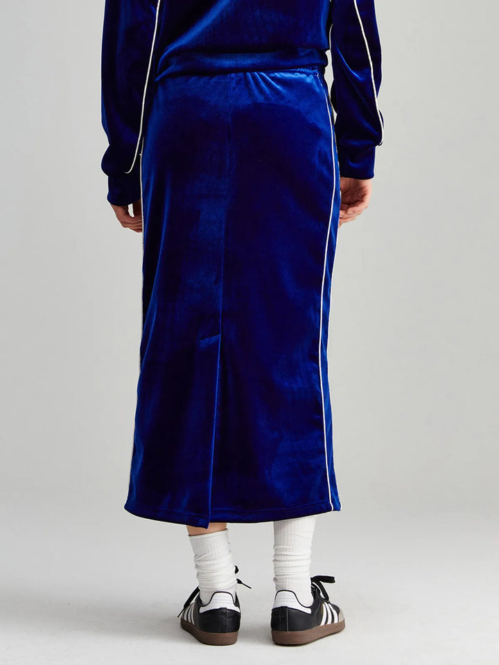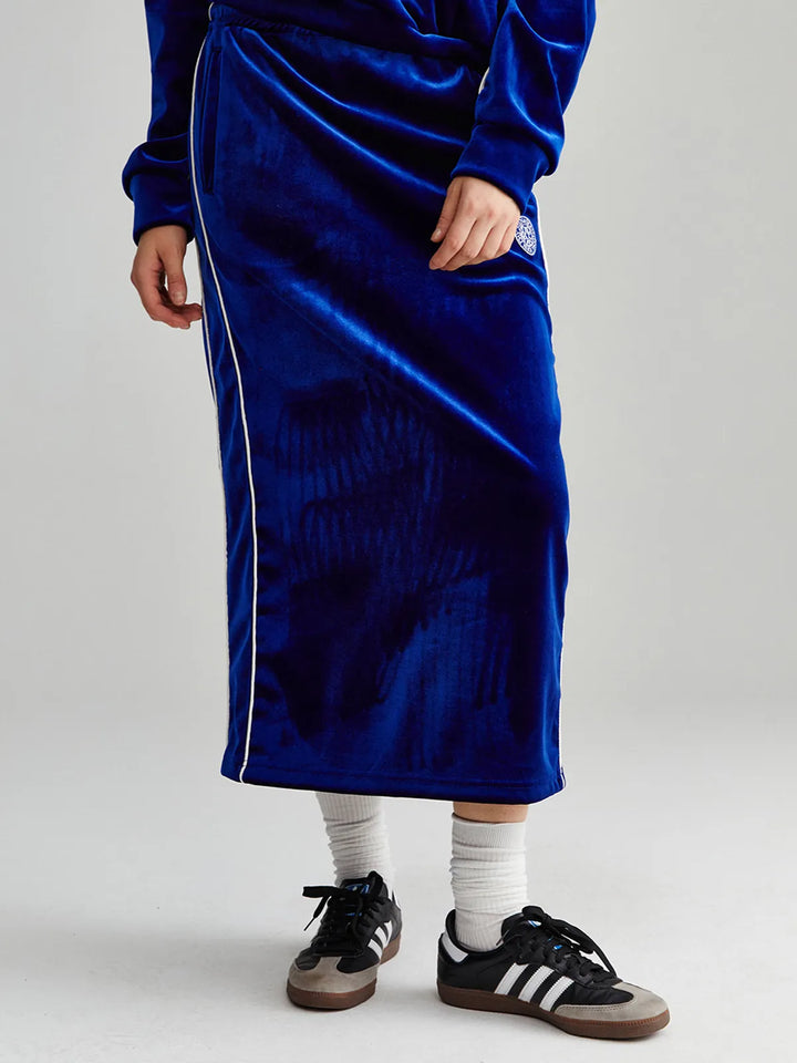 VELVET TRACK LONG SKIRT_NAVY