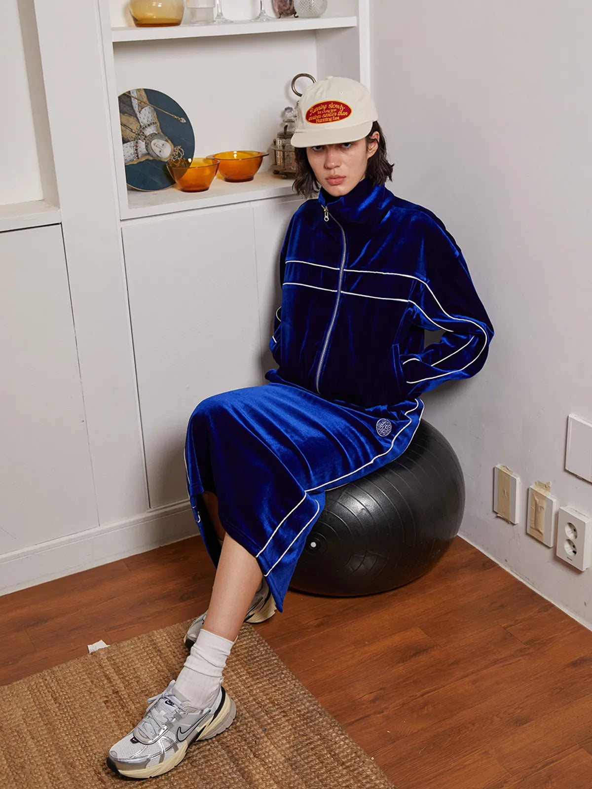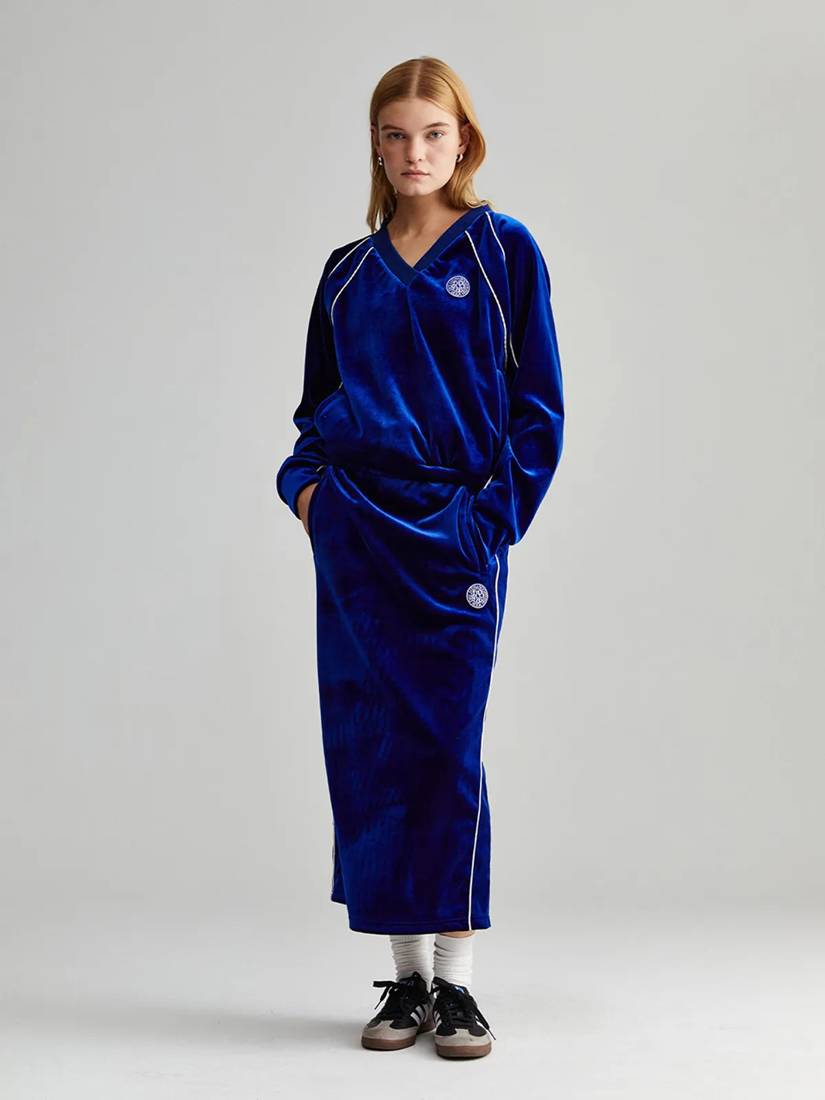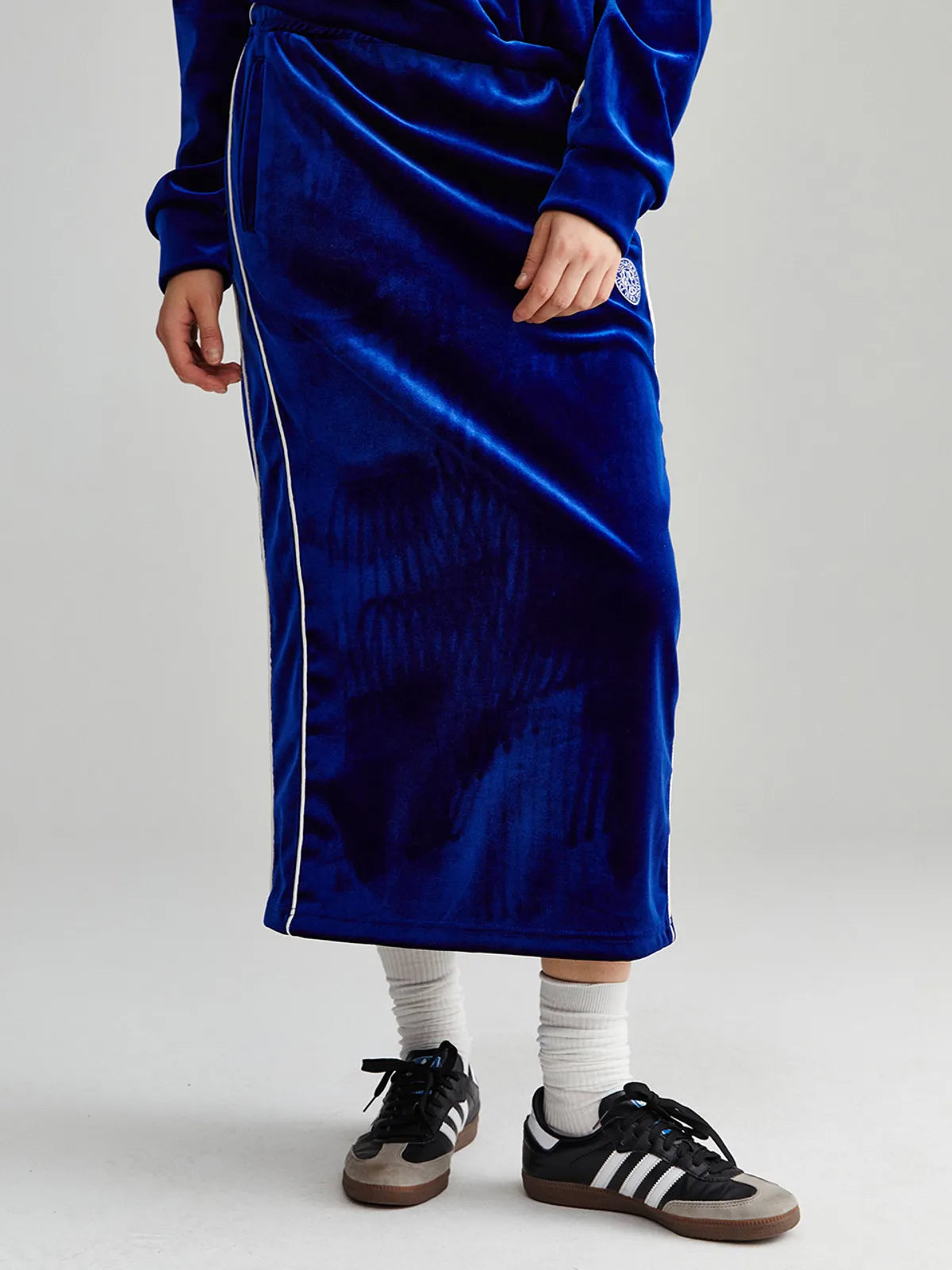 VELVET TRACK LONG SKIRT_NAVY