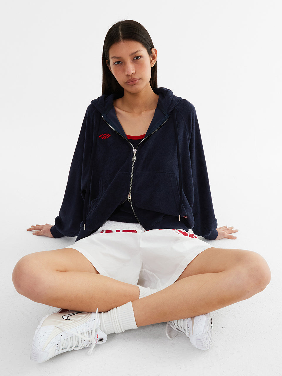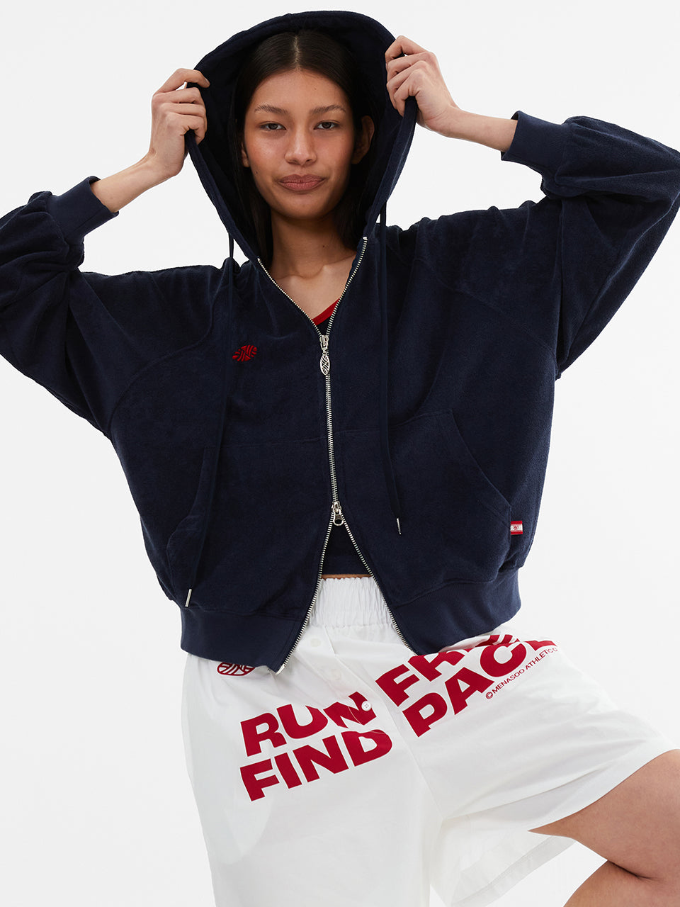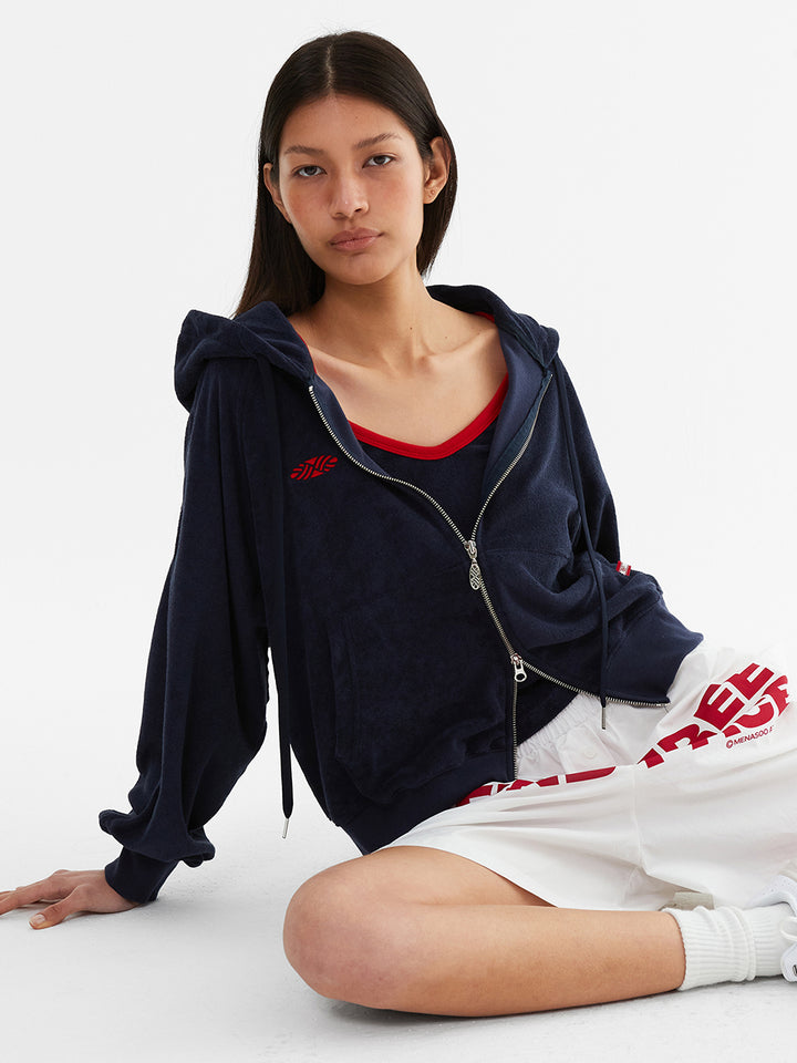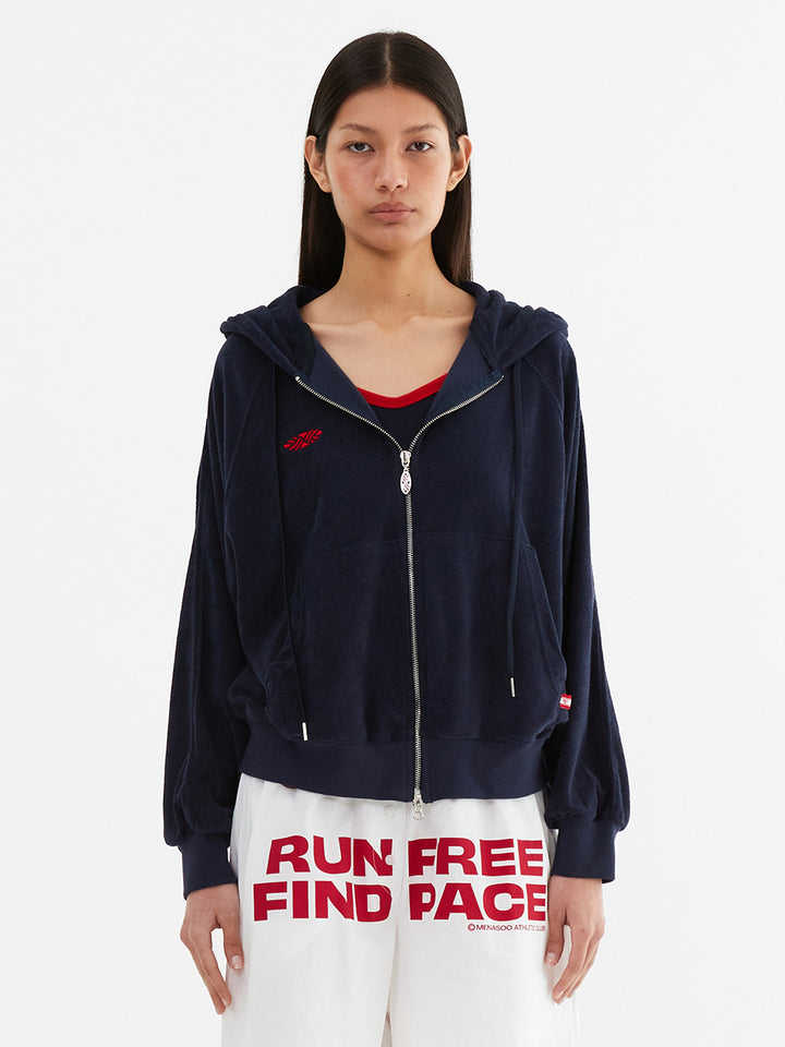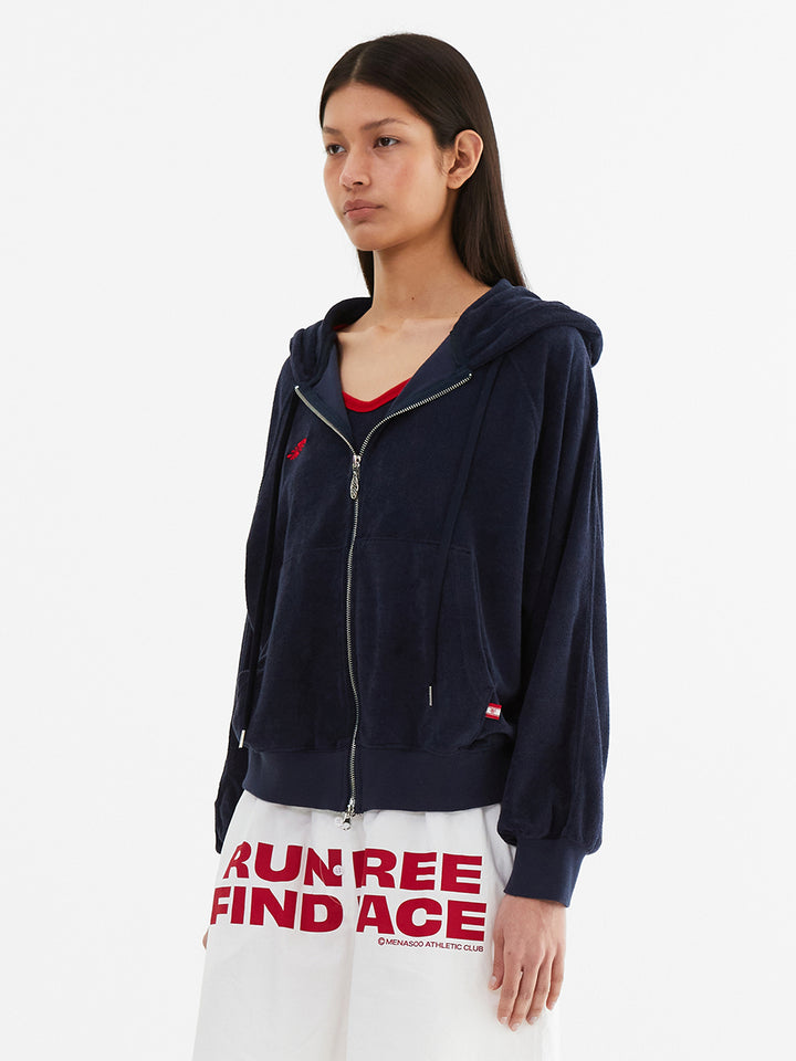 Terry Raglan Hooded Zip Up_Navy