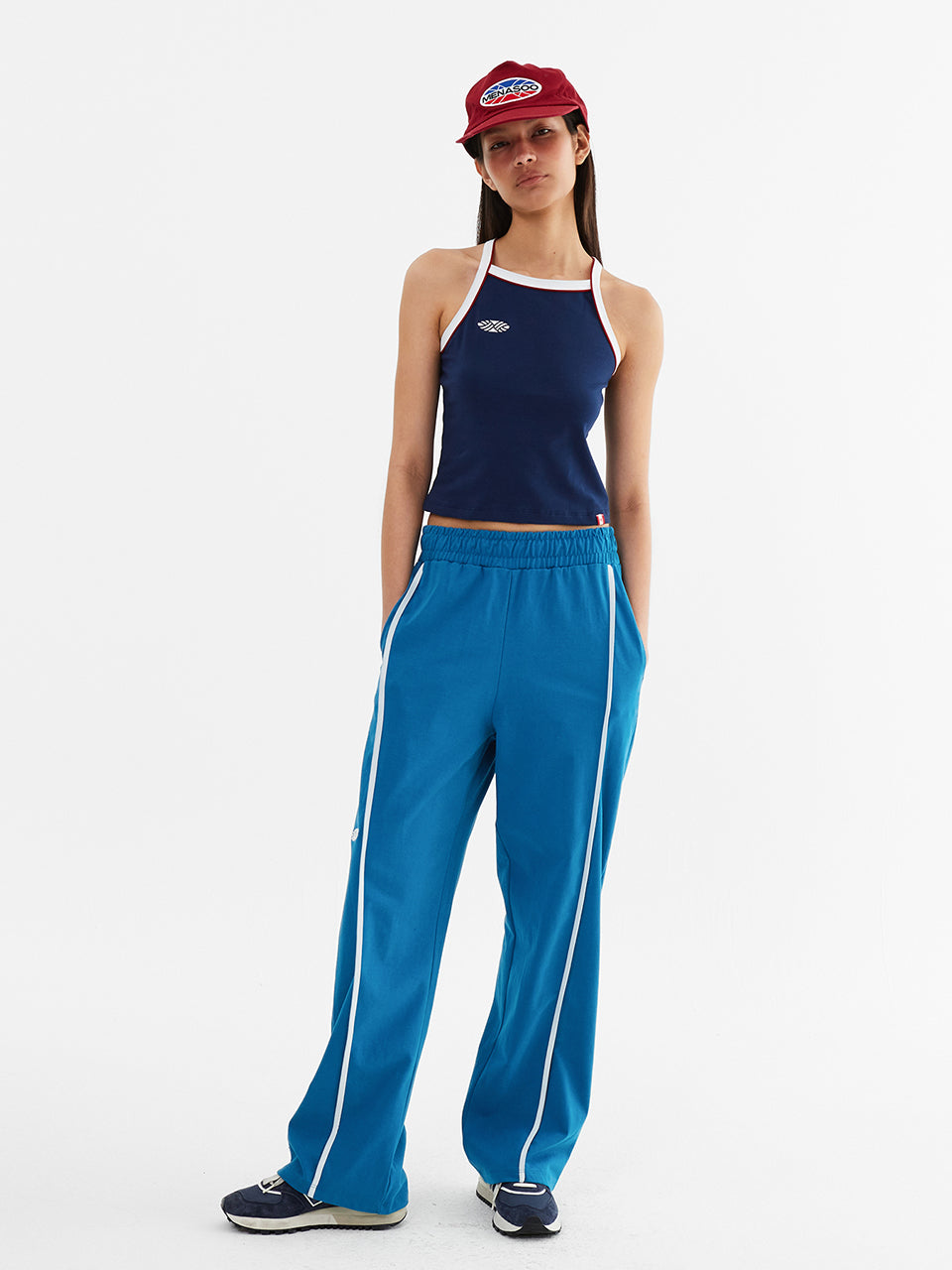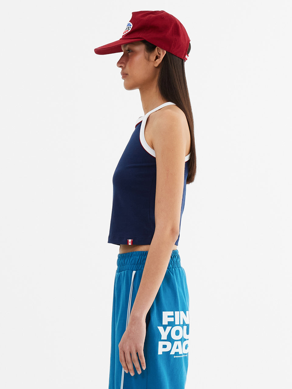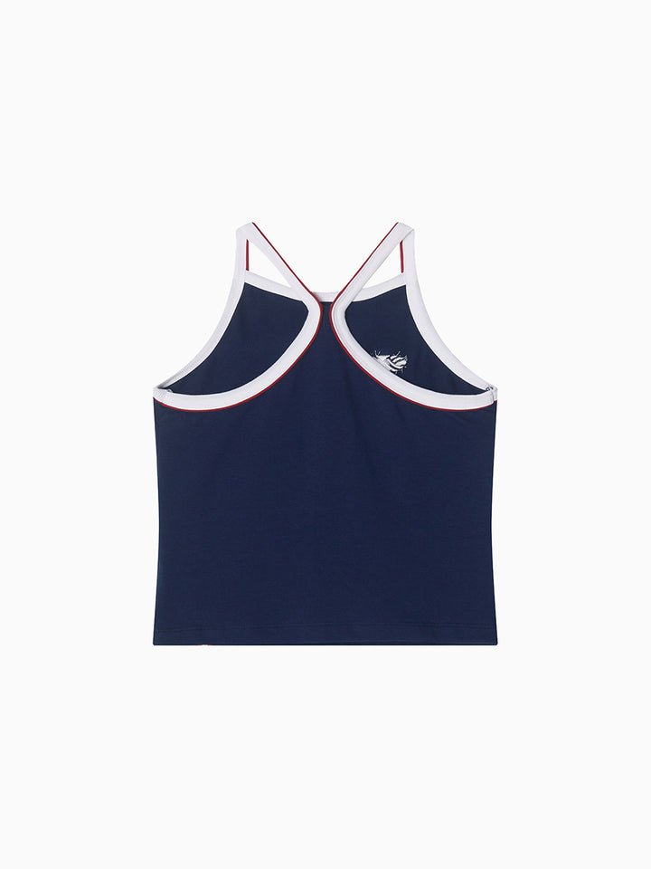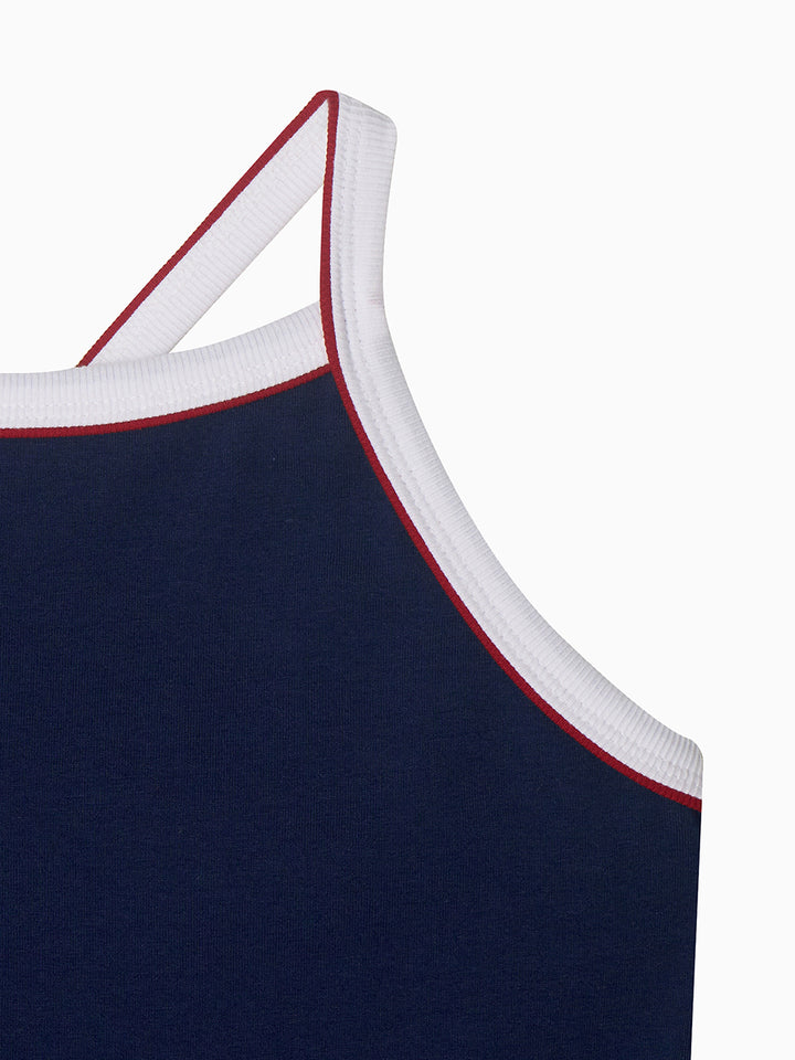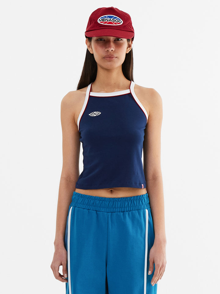 Y Back Halter Mini Crop Top_Navy