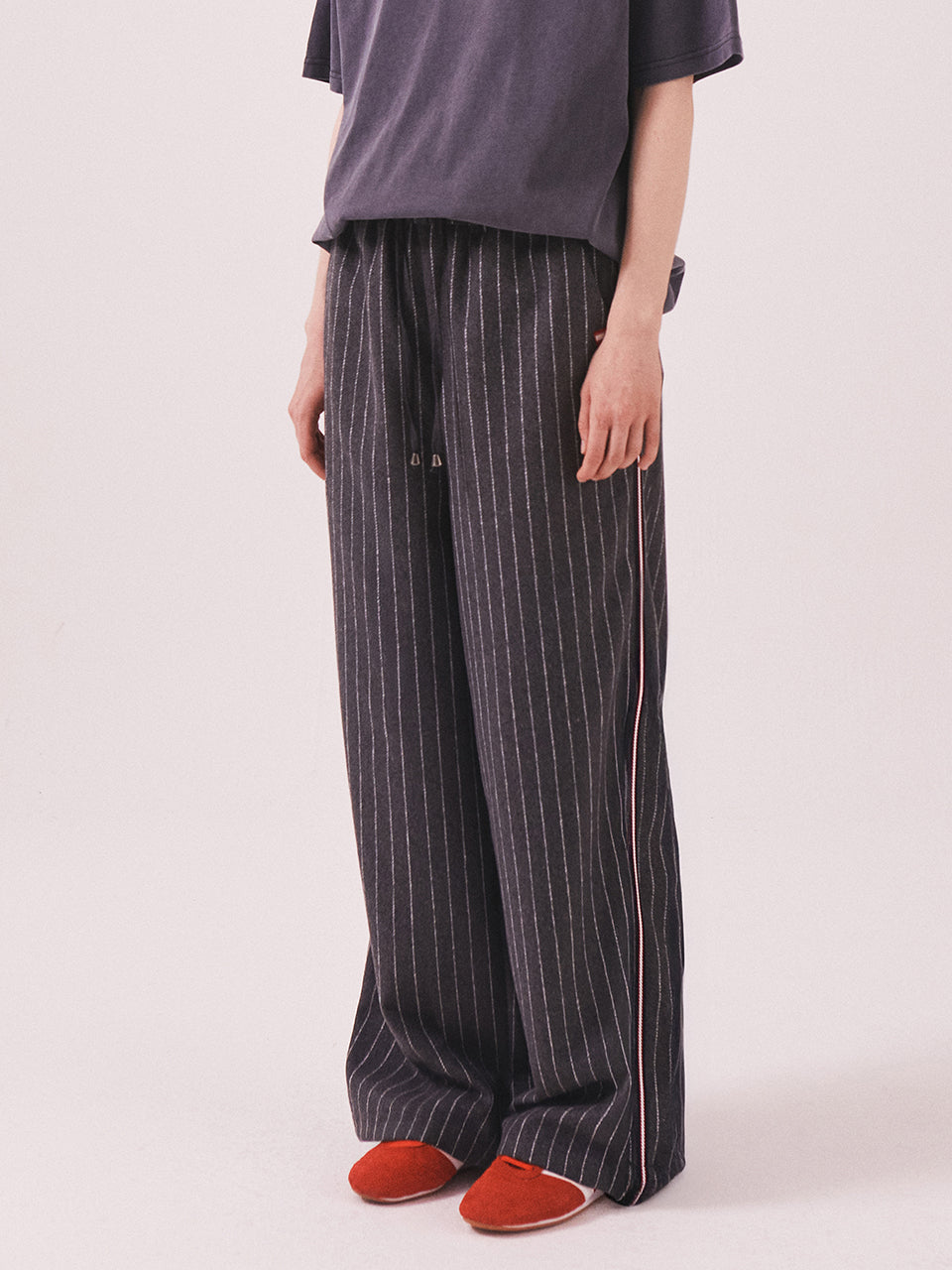 MNS Pinstripe Wide Brushed Pants_Gray